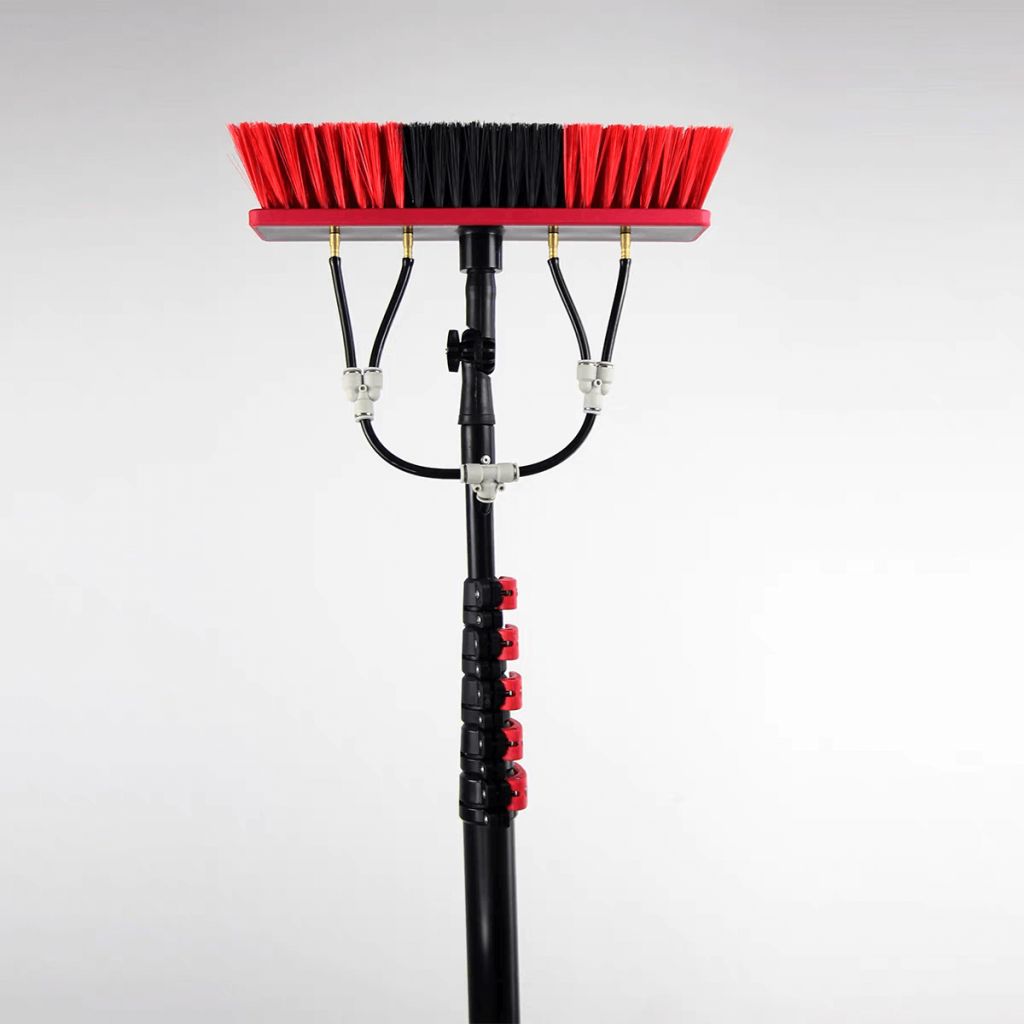 Water‑fed poles work well on glass, solar panels and smooth facades for streak‑free results, and with the right brush can be used on textured surfaces like brick or stucco. Match brush type and technique to avoid damage.