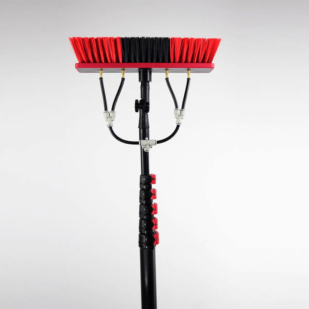 Teleskopstangen lassen sich mit Bürsten, Düsen und Schlauchanschlüssen an Waschanlagen anschließen. So können die Bediener die Platten aus der Entfernung reinigen, enge Bereiche erreichen und die Gefahr einer versehentlichen Beschädigung verringern - was zu einer vollständigeren, kontrollierten Reinigung führt.