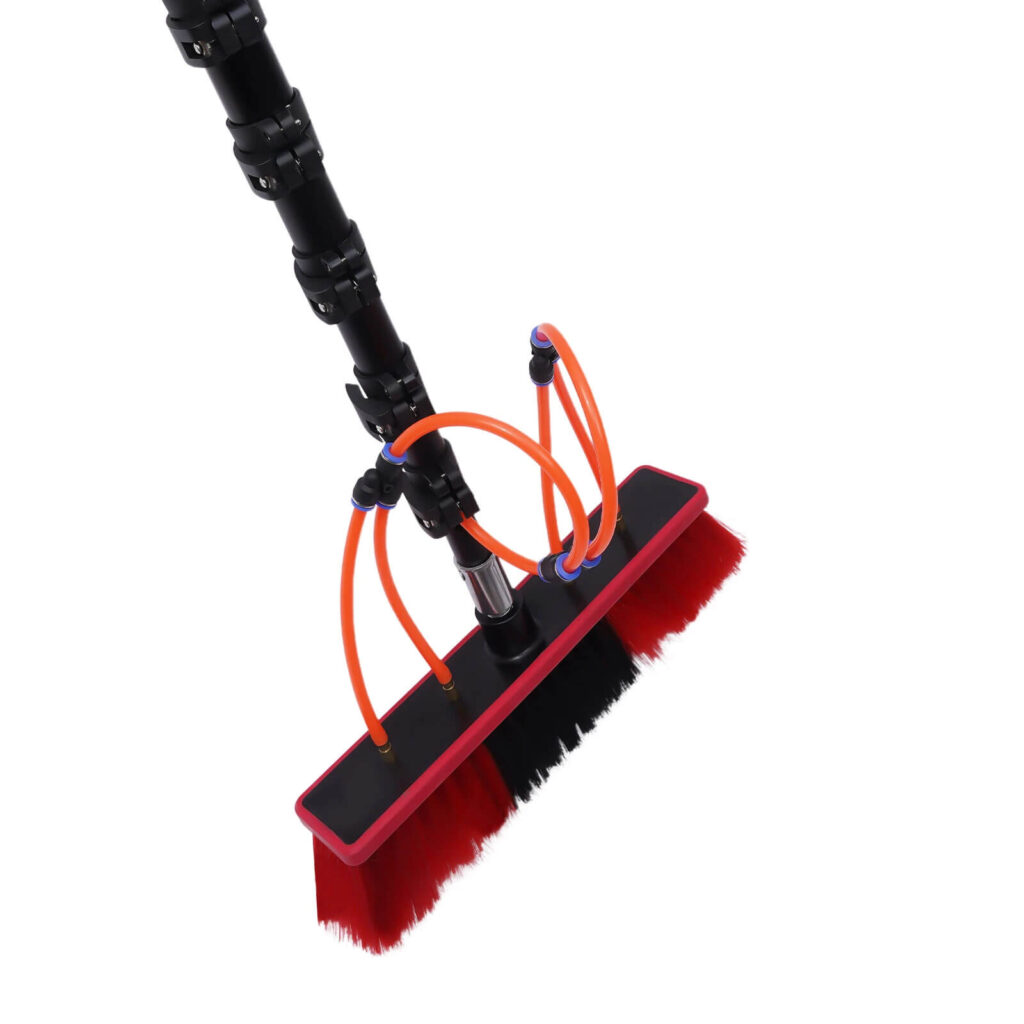 Mit Teleskopstangen können Sie die Dachflächen vom Boden aus erreichen und müssen nicht mehr auf Leitern steigen. Sie lassen sich in verschiedenen Höhen und Winkeln ausfahren und können mit Bürsten und Sprühdüsen für Solarglas bestückt werden, damit Sie gründlich und sicher reinigen können.